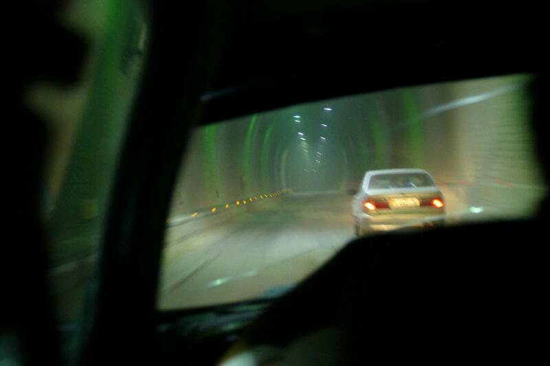 300 m avant le sommet du col, un tunnel long de deux kilomètres transperce la montagne. On l’emprunte. Le tunnel n’est pas très large aussi je ferme les yeux quand il y a un croisement en même temps qu’un dépassement. Aucune aération ni dégagement possibles en cas de problème.
