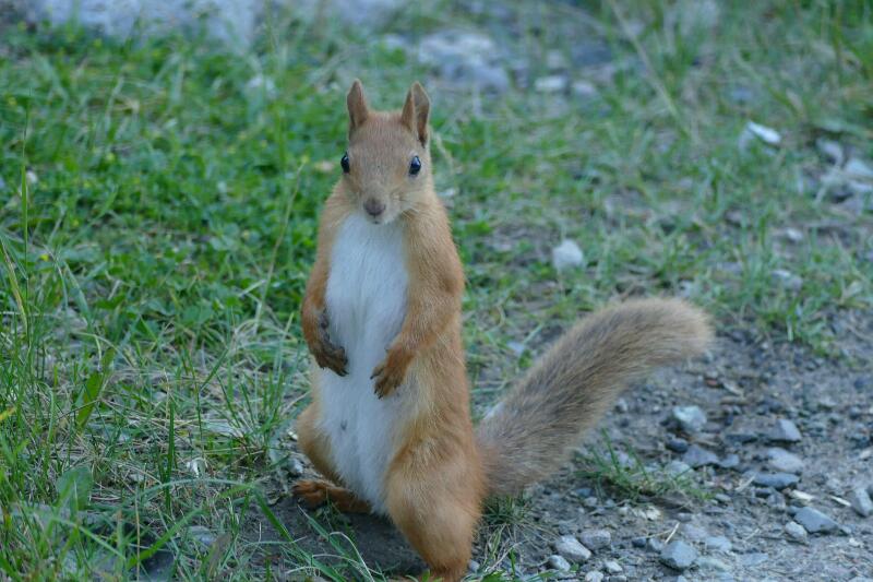 Nous entamons la descente vers 15h30. Un couple de jeunes nous dépasse en courant. Ni une ni deux, les vieux ne s’avoueront pas vaincus ! Me voici partie en cùourant, Manu sur mes talons. Je sais qu’on les aura au passage du torrent : ils ont des chaussures de marche. Et ça ne rate pas, on leur met une mine pas possible. Ah ah ah ! Je suis allée tellement vite que Manu me propose de faire une pause, sinon on va attendre deux heures en bas puisqu’on a donné rendez-vous au taxi à 19h00. On s’arrête pour soi-disant observer les marmottes. Mais il n’y aura pas de marmotte. Nous avons une demi-heure à attendre le taxi, le temps de prendre en photo un adorable petit écureuil.