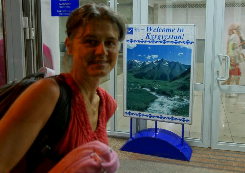 Pour Isabelle, le mystère ne s’est finalement résolu que quelques heures après l’atterrissage, lorsqu’il s’est agi de tirer nos premiers soms (la monnaie locale, orthographiée “com” en cyrillique) dans un distributeur bêtement intitulé “Kirghiz Bank” ou quelque chose comme cela. Jusqu’alors, elle pensait se trouver dans une sorte de péri-Mongolie, ce qui n’est au fond pas tout à fait faux quand on considère à la fois la géographie physique et la géographie humaine du pays. C’est d’ailleurs bien sur ces critères que je l’avais choisi comme pays initial de notre tour du monde: les pays tropicaux, les destinations lointaines et les treks en haute montagne s’y trouvaient en quantité suffisante, mais pour plus de contraste, l’ensemble manquait un peu de steppes ouvertes, d’alpages d’altitude, et de vie nomade.