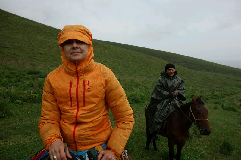 Les sentiers escarpés que nous empruntons n’épargnent pas nos montures, qui avancent bravement, gagnant du terrain entre les cailloux, mètre après mètre, dans la brume ou sous le crachin. Nous faisons une pause déjeuner vers 14h00.