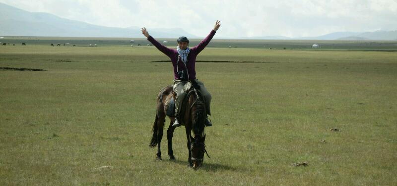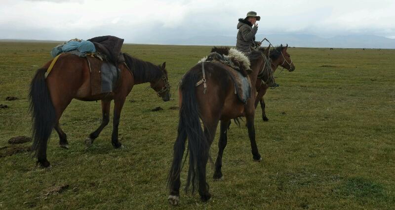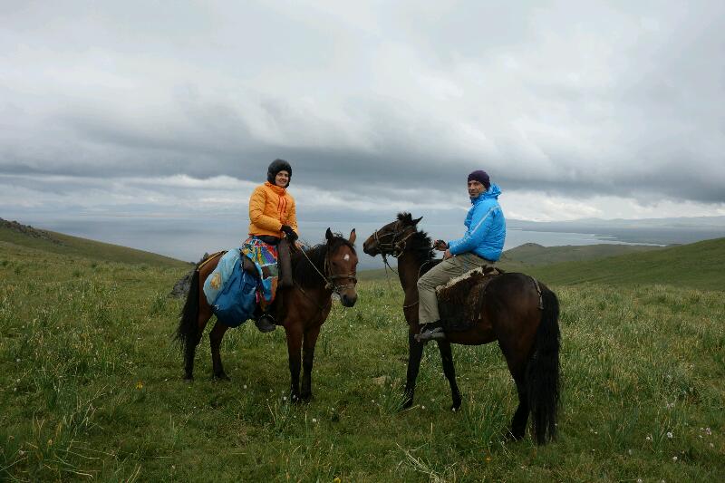 Puis nous partons à dos de canassons, à la conquête du lac Song Kül.