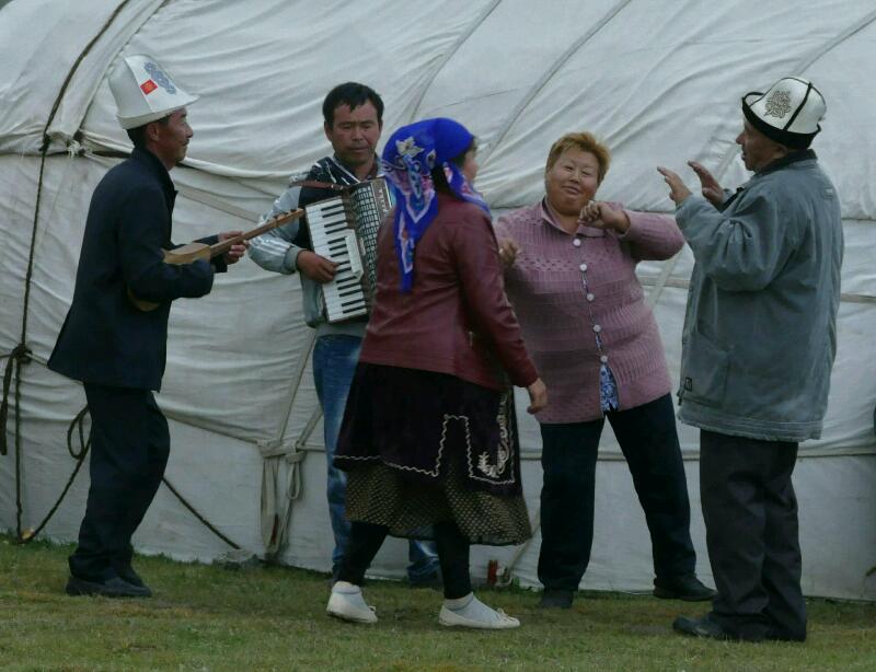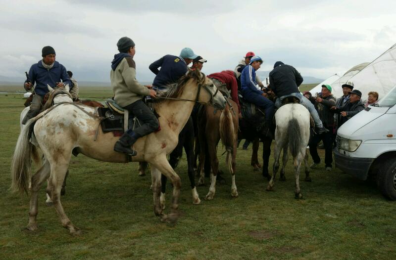 Nous sommes effectivement très bien reçus par cette femme dynamique qui parle parfaitement anglais. Un guide (Aman), qui apprend le français, est aussi présent. Ils essaient de nous vendre le tour « classique » mais Manu ne se démonte pas et insiste pour avoir ce qu’il avait prévu : passer par l’ouest du lac Song Kul, beaucoup moins fréquenté que le côté est. Nous avons la chance de pouvoir assister à un grand festival dimanche, apparemment très apprécié des kirghizes.