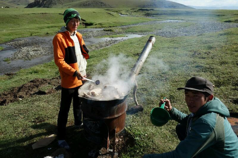 De retour à la yourte, on assiste à la cuisson du mouton qui mijote pendant très longtemps.