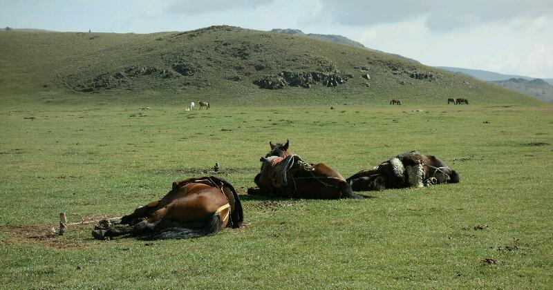 Cette nuit, mon cheval s’est détaché et les kirghizes ont dû le rattraper. Du coup, tout le monde dort ce matin.