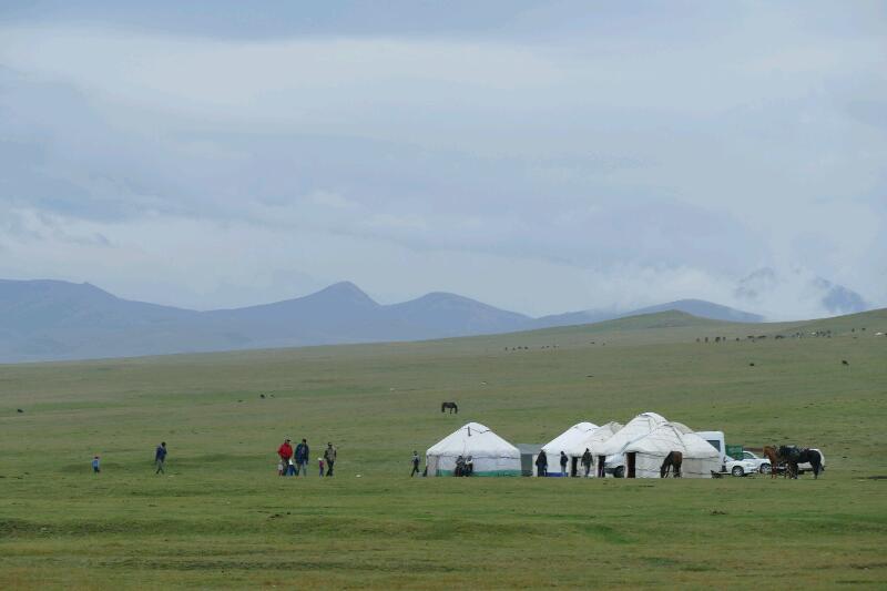 Nous ne connaîtrons malheureusement pas l’émerveillement prévu du lac de Song Kül apparaissant de l’autre côté du col, à 3000 mètres d’altitude, tellement le ciel est couvert.
