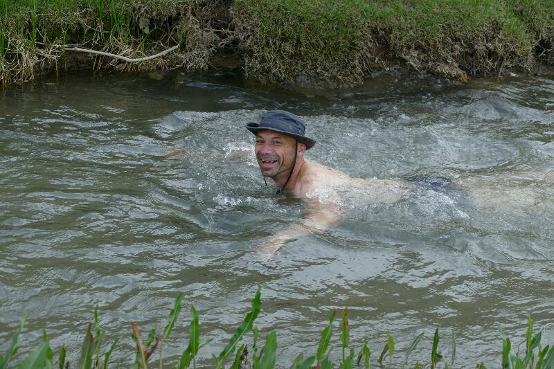 En sortant, nous allons chercher de l’eau pour la nuit, 2 bananes et une part de gâteau pour compléter notre repas. Papy appelle à ce moment-là. Il pleut de nouveau pendant la nuit.