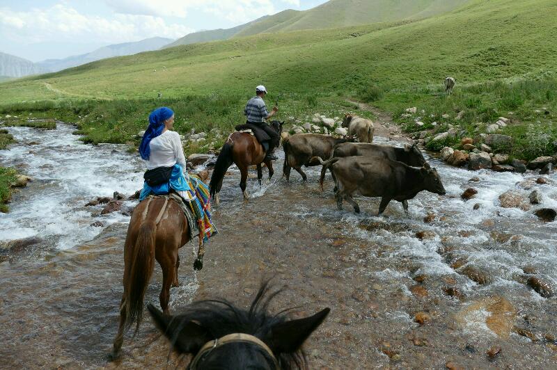 Pendant le déjeuner, la jeune femme vient engager un échange avec Aman. Elle s’appelle Narguiza. Son union est le résultat d’un mariage arrangé mais qui fonctionne apparemment très bien. Tellement bien qu’elle a accepté de suivre son mari lorsqu’il a décidé de devenir berger. Ils habitent à Bichkek l’hiver, ont deux petites filles. L’été, ils viennent s’installer dans les montagnes. Les parents de Narguiza ont dû mal à comprendre ce choix. Aman nous dit que c’est une famille très riche quand Narguiza lui raconte posséder bon nombre de moutons, chevaux et même des yacks.