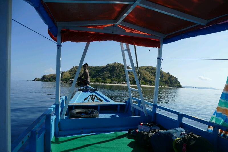 Comme prévu, nous sommes à l’agence à 7h00. Comme souvent en voyage, les heures convenues ne sont pas forcément les heures de départ réelles … Je suis bien contente de me retrouver sur « notre » petit bateau pour naviguer entre les îles de la Sonde. L’équipage se compose d’un capitaine, d’un équipier qui s’occupe des manœuvres et de la cuisine, plus un jeune garçon en apprentissage. En montant sur le bateau, ce jeune m’appelle mamie… on sera donc, pour la première fois, papy et mamie pendant trois jours. Nous prenons un petit déjeuner et assez vite, nous nous arrêtons snorkeler près de l’île de Kanawa.