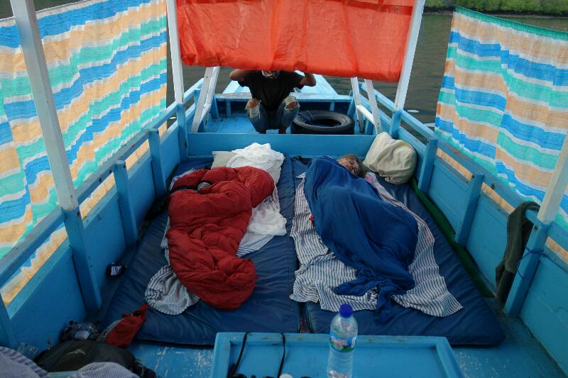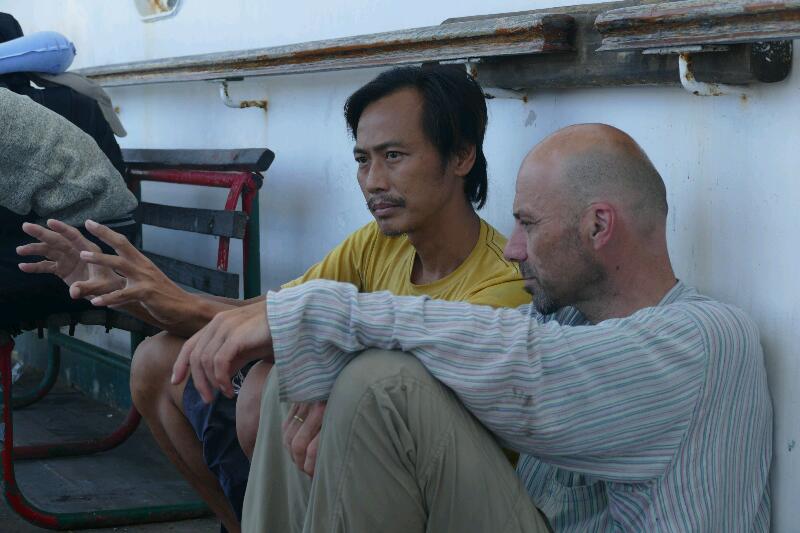 Toujours est-il qu’à l’escale à Bima, notre premier compagnon nous trouve bien 2 couchettes. Manu descend avec lui pour poser es sacs afin de les réserver. Il me prévient qu’il va rester un peu, le temps de la rotation entre ceux qui descendent et ceux qui montent. Il revient 30 mn plus tard, complètement paniqué, me demandant de descendre immédiatement avec lui car il y a tellement de monde que certains échauffements commencent à avoir lieu et qu’il craint ne pas pouvoir garder les deux couchettes. Le temps de descendre, tout cela s’est un peu calmé. Je me demande même s’il n’en rajoute pas un peu !