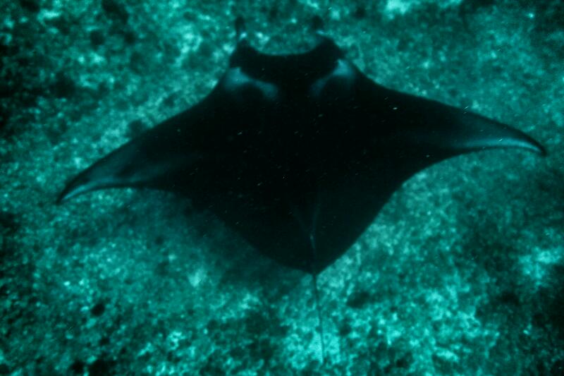 Le deuxième stop se fera au spot de Karang Makassar, Manta Point. Comme son nom l’indique, c’est un endroit réputé pour voir des raies mantas. L’équipage tourne, scrute les fonds marins pendant de longues minutes jusqu’à ce qu’il nous commande d’aller à l’eau. Effectivement, nous avons la chance de voir une raie Manta. Ceci dit, elle va rester assez profond toute la plongée.