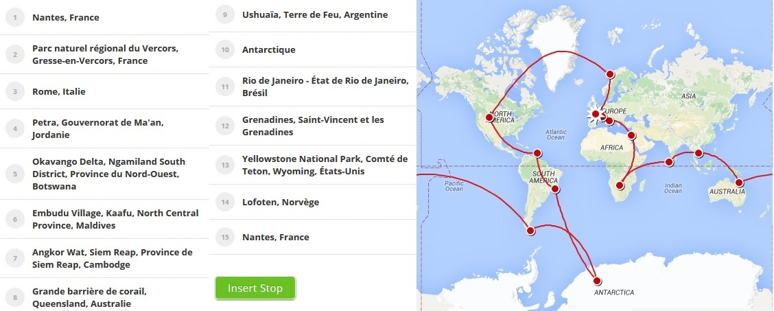 Le choix de la liste des pays à visiter lors d'un tour du monde constitue un exercice dont on ne peut dire a priori s'il est facile ou difficile, tant il dépend du temps, de l'énergie, et de l'attention qu'on voudra bien lui consacrer. Certains n'y passeront que quelques heures, sûrs de pouvoir se réorganiser en cours de route, ou tentés de rompre en ce domaine particulier avec l'exigence de contrôle et de planification qui caractérise bien des aspects de la vie moderne. D'autres y voueront des soirées et des week-ends, de longs moments de vérification sur les forums de voyageurs, et d'intenses efforts d'arbitrages entre les promesses des cocotiers de Tahiti et les glaciers de Patagonie. En la matière, il n'y a à l'évidence pas de modèle unique, mais on peut tout de même se laisser aller à penser que la façon dont on planifie son tour du monde a quelque chose à voir avec la façon dont celui-ci sera vécu.
