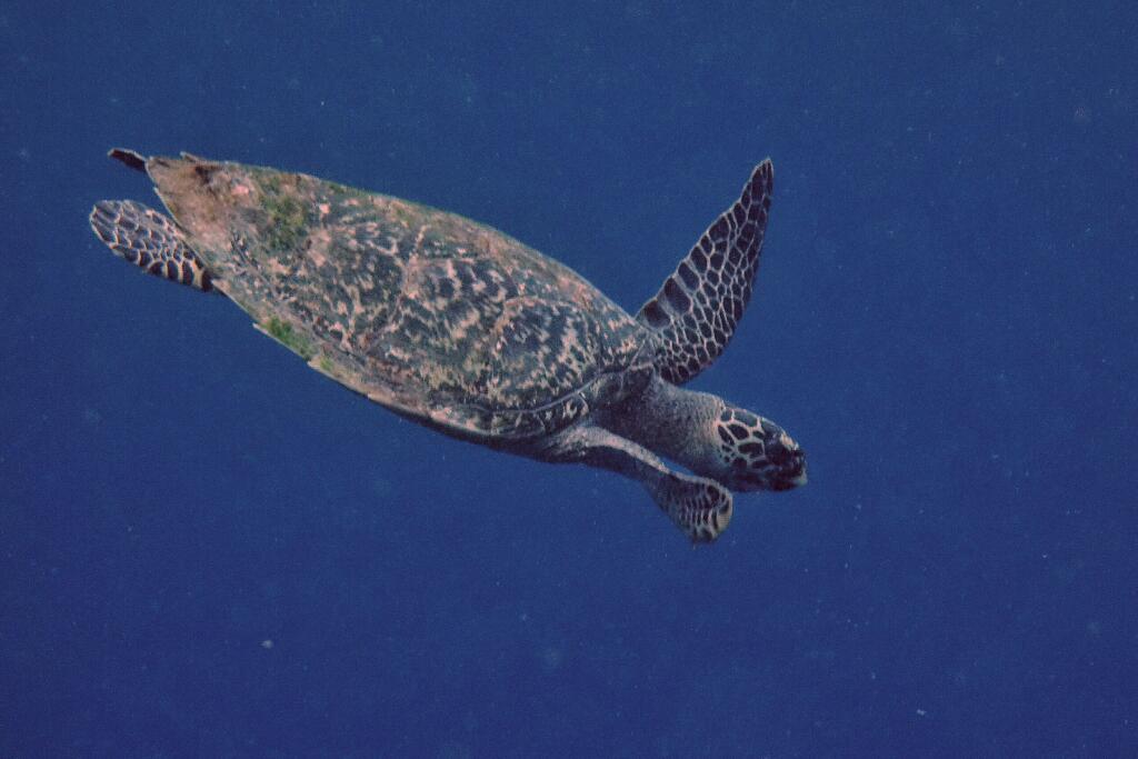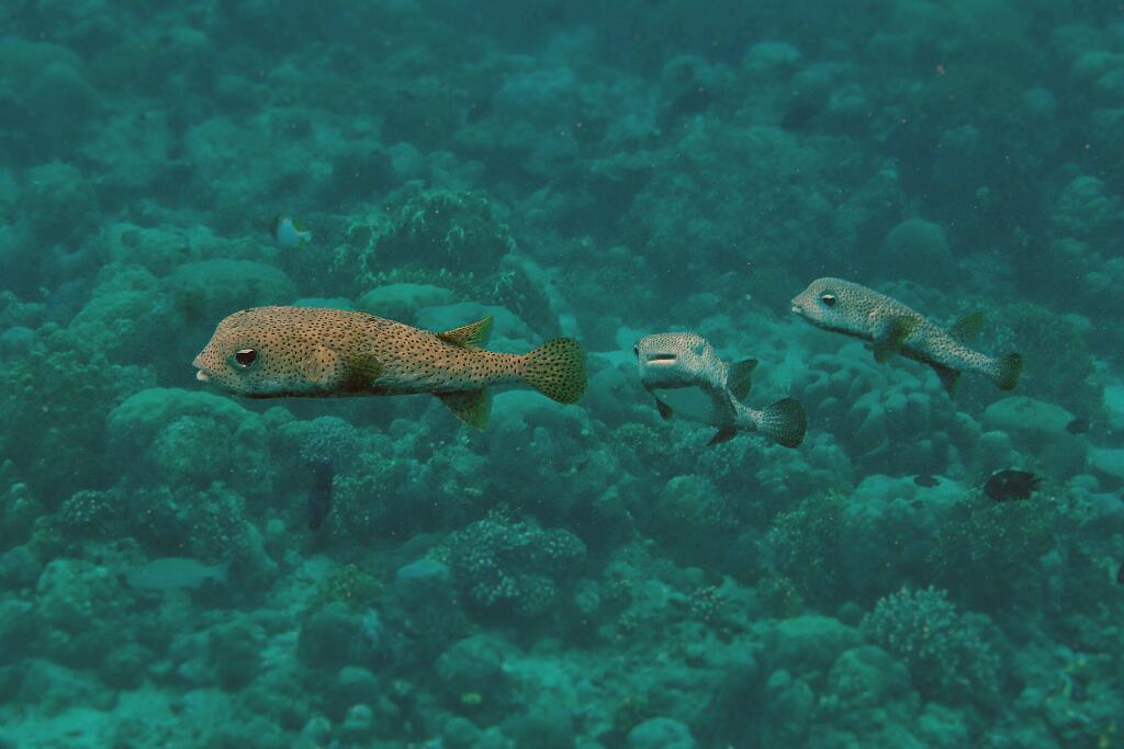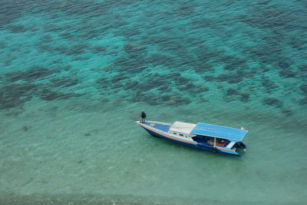 J’ai entendu Manu se lever cette nuit prendre en vitesse de l’Ibuprofène à cause d’une migraine. Nous partons en excursion tous les deux ce matin pour aller en bateau sur le site de Lekuan, réputé avoir des tortues. Nous en voyons quelques-unes mais impossible de les approcher. On y croise aussi beaucoup de poissons ballons.