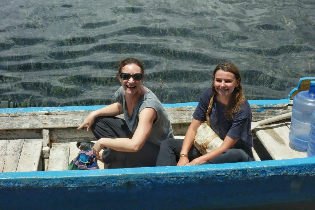 Les filles bouclent leurs bagages et repartent aussitôt dans le bateau : elles vont manger au village.