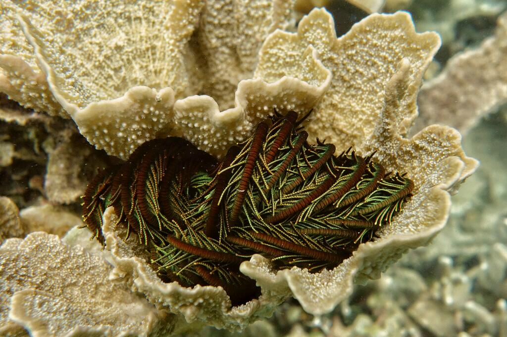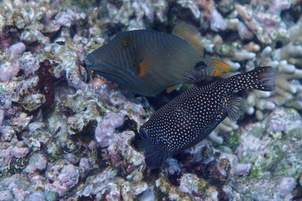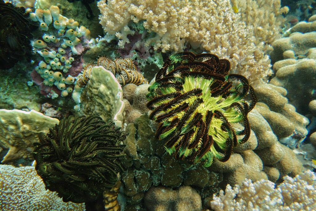 De plus, bien sûr, le site de Tumbak présente de nombreuses ressources, et il est possible d’y profiter autant de la diversité des coraux que de la profusion de poissons. Il faut noter qu’il n’y a pas beaucoup de « gros » (observation qu'il faut contextualiser puisque nous n’avons pas plongé avec bouteilles) et pas vraiment de tombants, du moins dans les zones que nous avons explorées. En revanche pour tout ce qui va du nudibranche à la murène, il y a de quoi faire.