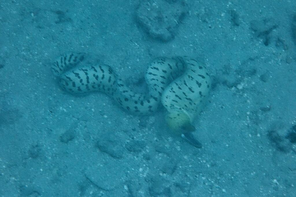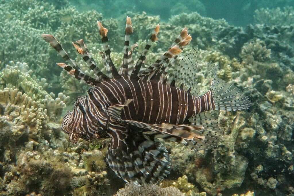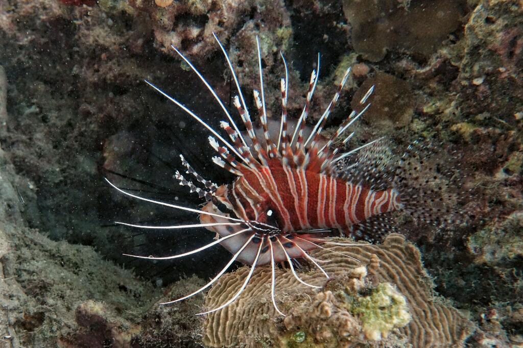 L’après-midi, nous allons visiter un autre site qui nous permet de croiser, entre autre, deux variétés de lionfish et une énorme murène en pleine eau.