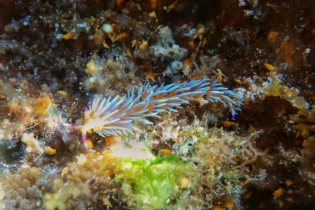 Nous retournons snorkeler là où nous étions allés la première fois. Raphaël et Amory ne connaissent pas et Christophe peut plonger à cet endroit. Yoann nous donne rendez-vous dans une heure mais en réalité, ils seront de retour beaucoup plus tôt. Christophe n’ayant pas plongé depuis longtemps, il a consommé rapidement toute sa bouteille. Cette dernière plongée est sans doute l’élément déclencheur de celles qui suivront car nous trouvons tous les deux nos premiers nudibranches …