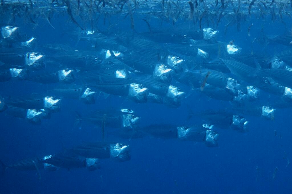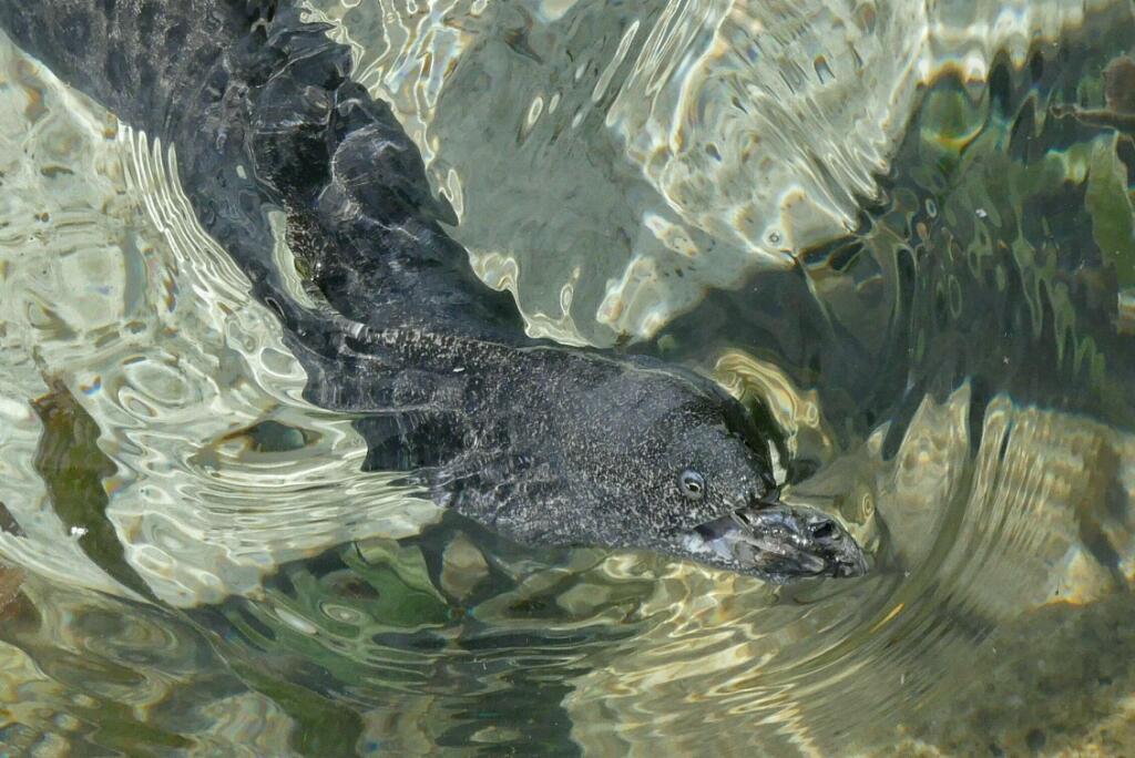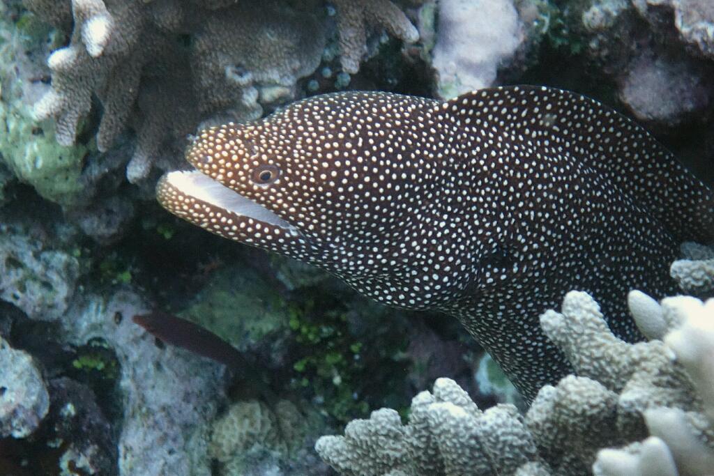 Après le déjeuner, nous nourrissons les murènes qui logent sous nos bungalows avec les restes de poissons.