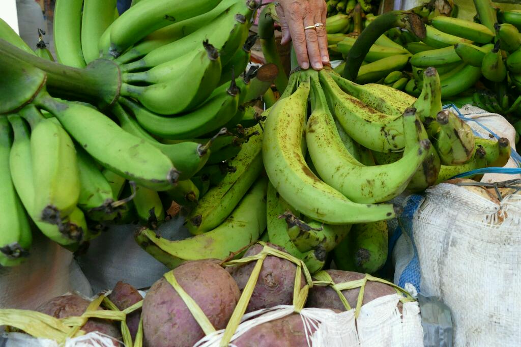 Hody nous offre quelques pâtisseries, nous achetons quelques fruits (Sirsak, bananes et pastèques) et quelques autres gâteaux pour le déjeuner à venir. Ici, les fruits (mangues et bananes) sont d’une taille démesurée !