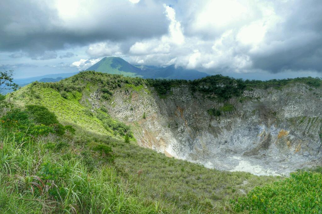 Tomohon, on peut y passer, personne ne dira le contraire, mais honnêtement, il n’y a là rien de spectaculaire ; les belvédères sur les lacs et volcans ne méritent sans doute pas, en eux-mêmes, le déplacement. Les panaches de fumée existent, mais ils restent lointains et peu contrastés : en revanche, on semble assuré d’avoir beaucoup de pluie, les coteaux verdoyants très fertiles en témoignent.