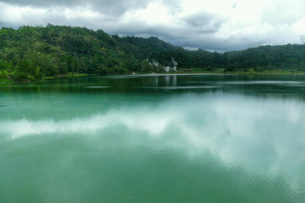 Nous montons ensuite au volcan Mahawu après une marche de 15 minutes avant d’enchaîner avec le lac acide que nous découvrons sous la pluie. Nous nous installons à une table pour déguster nos achats en attendant le retour du soleil.