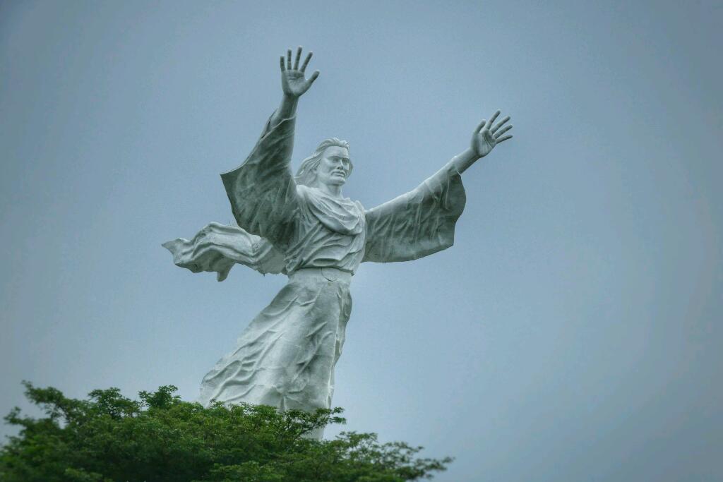 Nous reprenons la route vers Manado que nous atteignons après 1h1/2 de route. Avant d’entrer dans la ville, nous nous arrêtons photographier l’impressionnante statue du Christ.