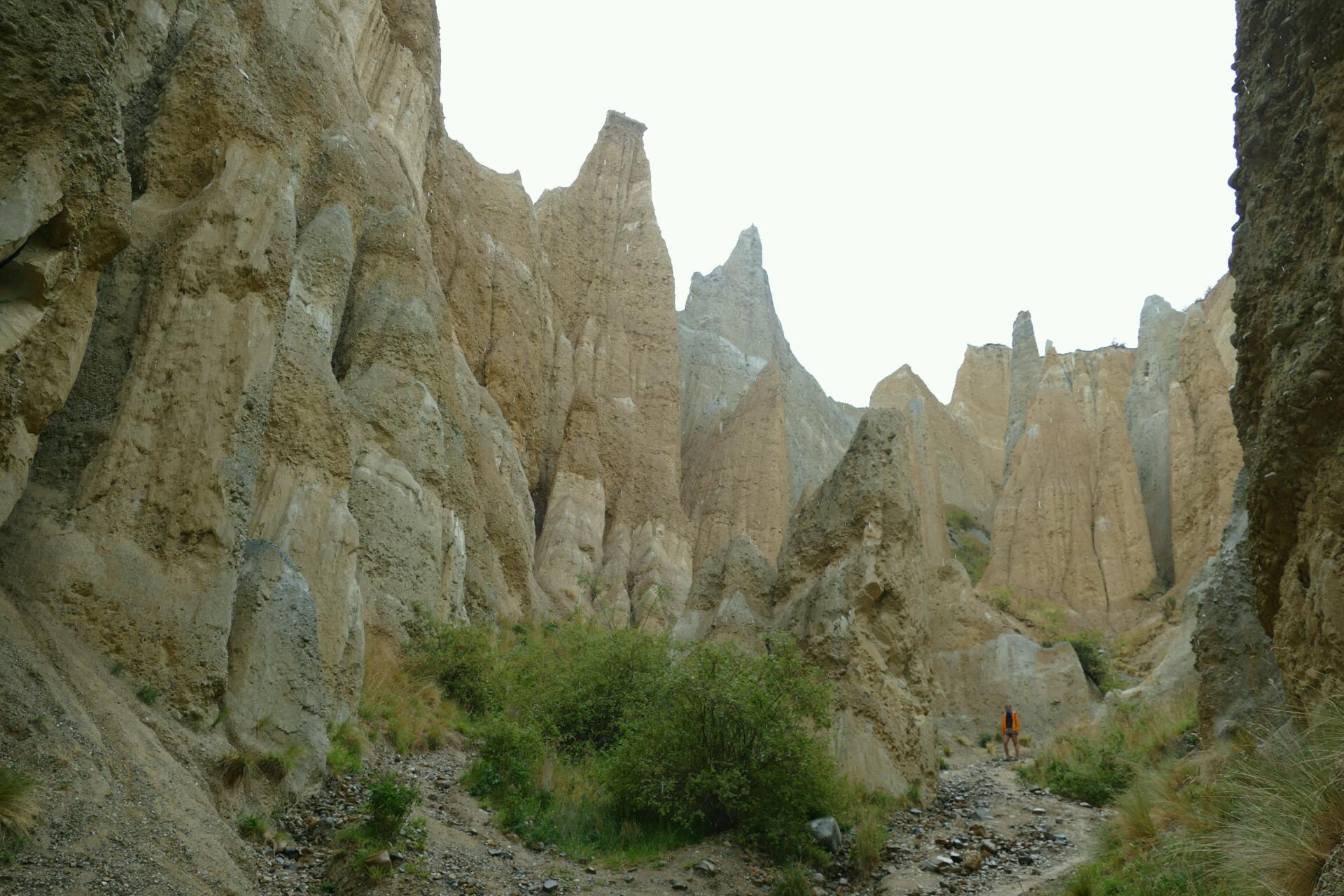 Pour déjeuner, nous nous arrêtons près du lac Ruataniwha. En repartant, nous passons devant un gros élevage de saumon, où un vieux pêcheur se lance dans des explications peu compréhensibles, du fait d'un accent local très prononcé, sur les techniques de piscicultures. Sur la route, nous nous arrêtons pour aller faire une courte balade dans les Clay Cliffs, formation d’argile composée de falaises à la fois impressionnantes et très photogéniques. Un peu plus tard, nous trouvons l'endroit de la laine mérino utilisée par Icebreaker, la marque de tous nos vêtements techniques !