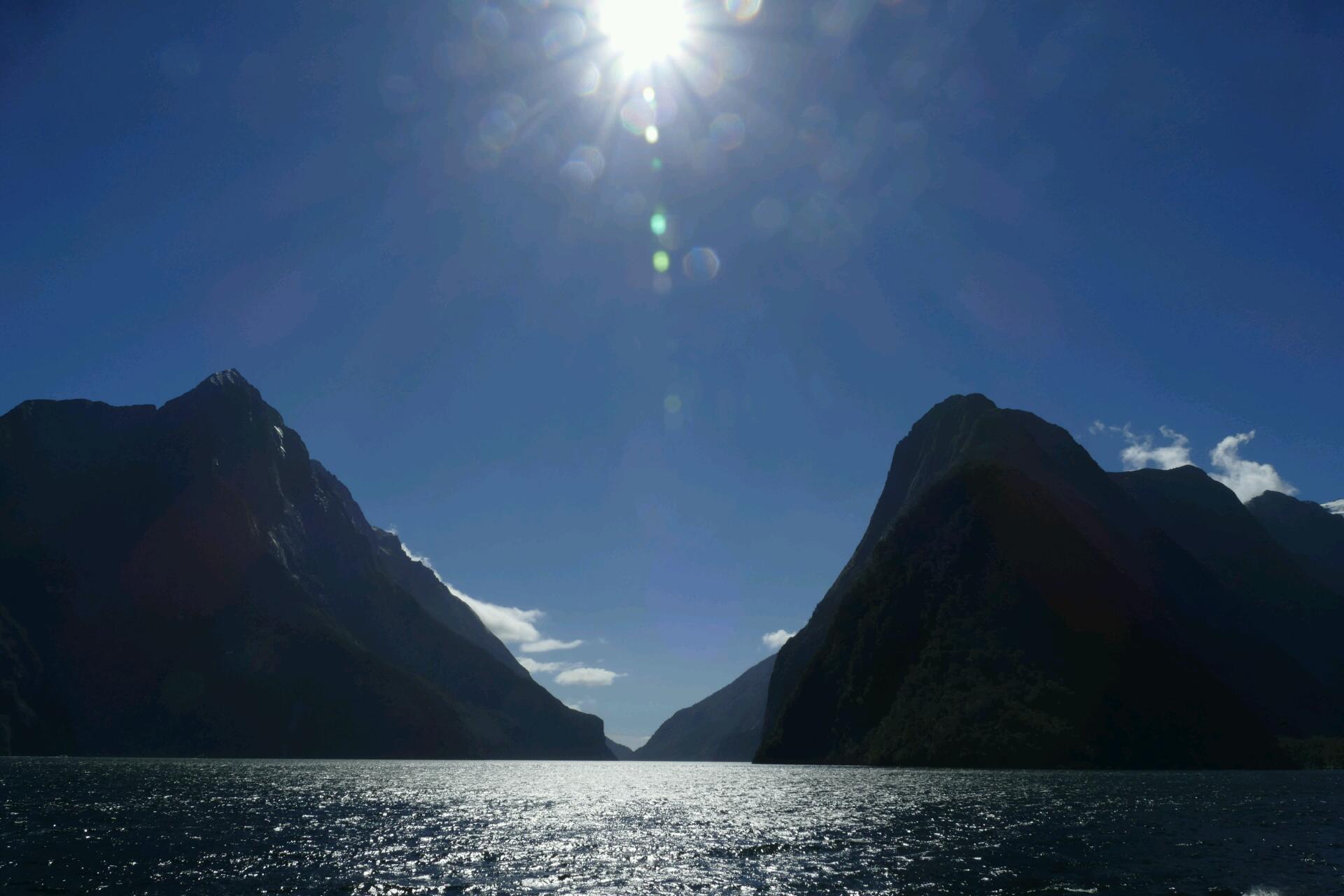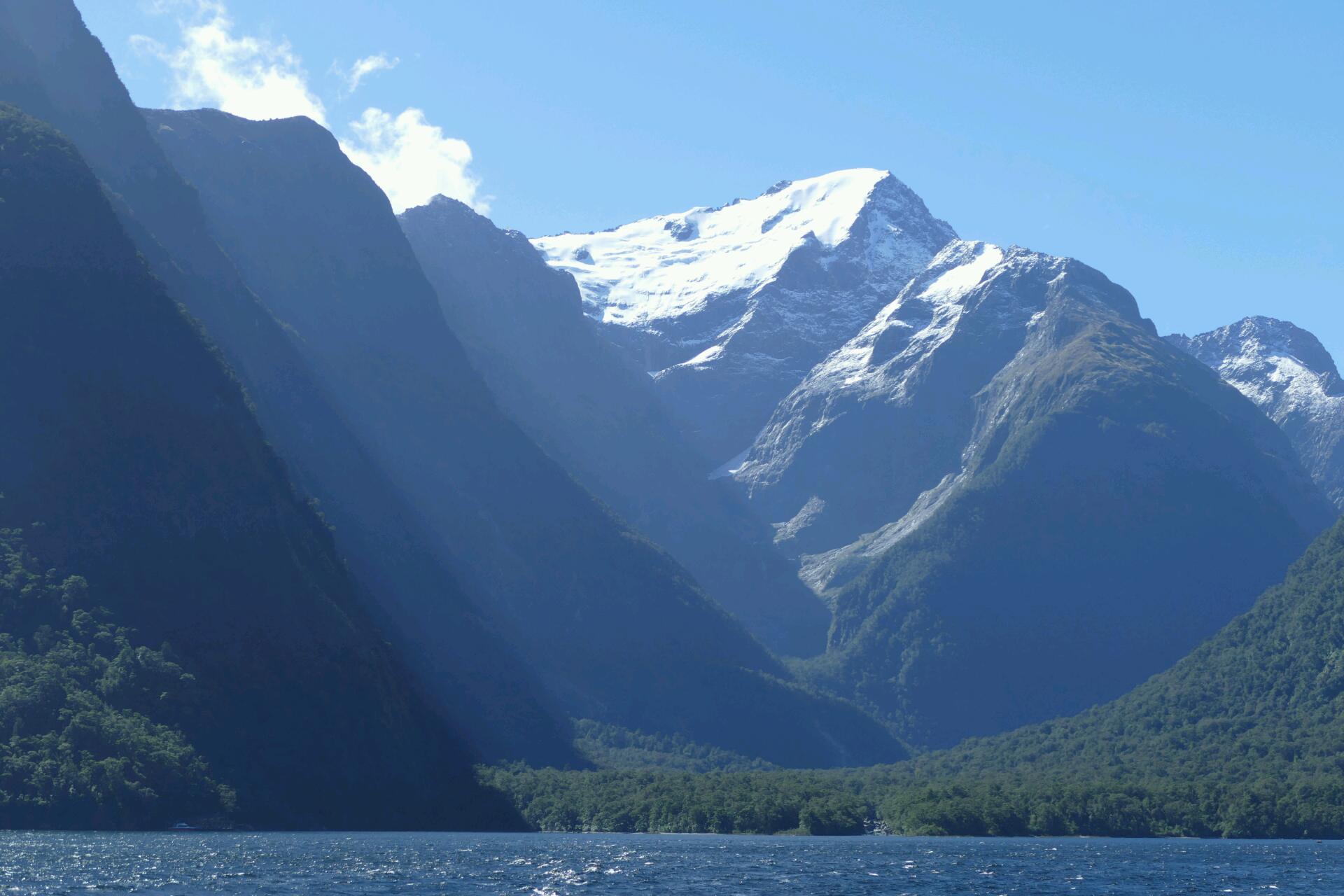 Il y a 50 millions d'années, toute cette région de Nouvelle-Zélande était noyée sous la mer. Le mouvement des plaques tectoniques a fait émerger les fonds marins. Puis des glaciers géants ont peu à peu creusé la roche. Il suffit de contempler les falaises qui nous entourent pour mesurer l'échelle du temps. La mer de Tasman a envahi la vallée lorsque le réchauffement climatique a fait fondre la glace, donnant naissance aux fjords. A Milford Sound, la vallée peut atteindre 400 mètres de profondeur sous l’eau. Quel bonheur de terminer la croisière avec un banc de dauphins venant nous raccompagner au port...