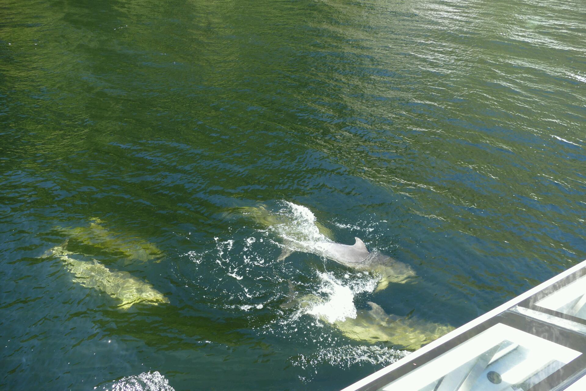 Je suis fin prête pour les eaux froides et profondes de l’océan du Pacifique sud. Avant de pouvoir nager avec les dauphins sauvages, nous devons signer une décharge car cette activité peut comporter des risques. Après quelques instructions données par vidéo, nous embarquons dans un bus qui nous conduit au bateau et prenons le large. Quelques minutes plus tard, nous apercevons les premiers dauphins husky. Nous nous arrêtons pour une première baignade en compagnie de ces superbes mammifères. Je suis surexcitée et ni une ni deux je saute à l’eau… très rafraîchissante malgré la combinaison et la cagoule très épaisses prêtées par le centre.