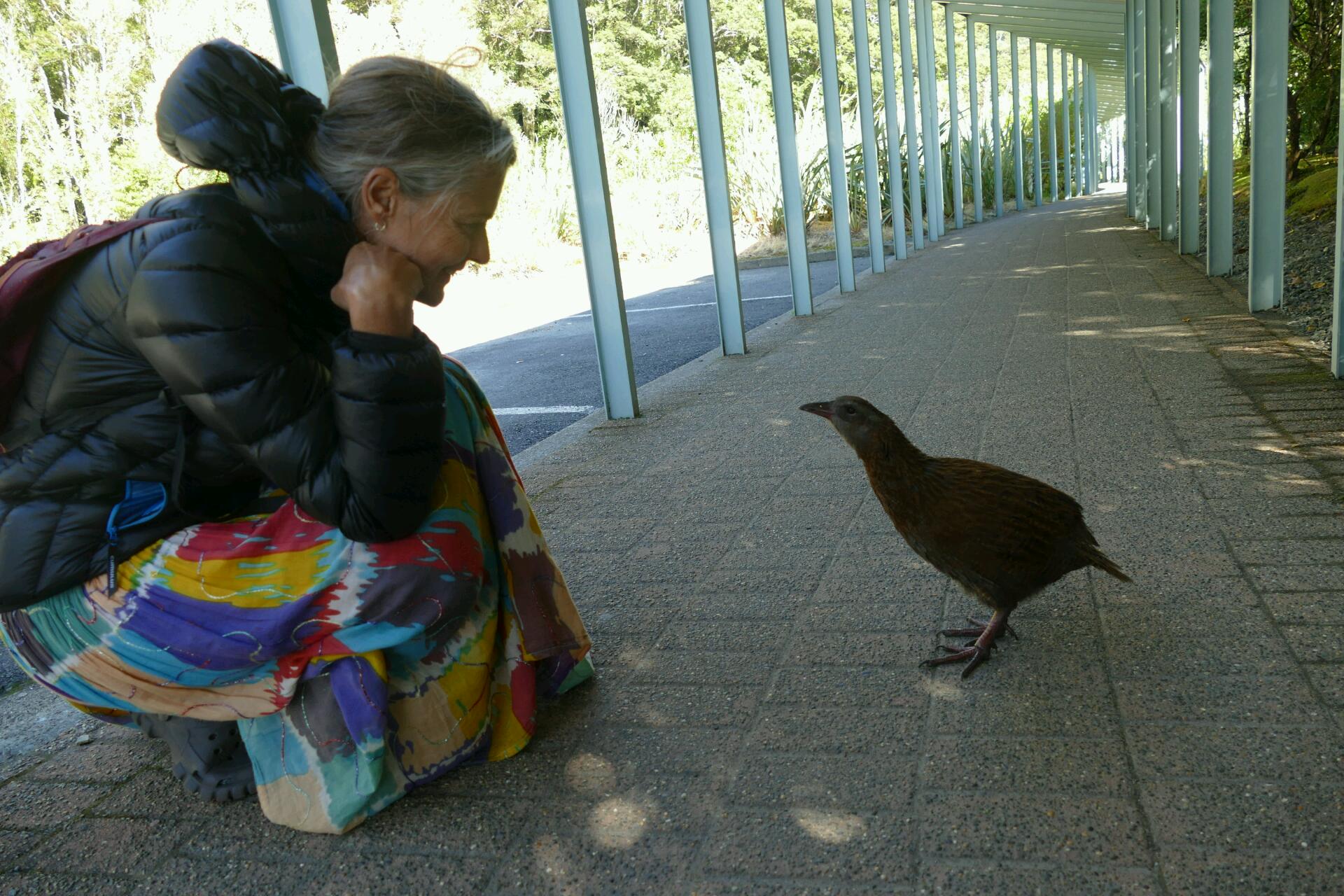 Sur le chemin nous permettant de retrouver notre van, nous croisons un drôle d’oiseau, peu farouche : notre premier Weka (le cousin du Kiwi), espèce endémique de la Nouvelle Zélande. Il est incapable de voler et est très curieux ce qui l’amène à picorer dans mes Crocs. Les Maoris attribuent une très grande intelligence à cet oiseau qui, selon eux, s'adapte très vite à un nouvel environnement. Un proverbe Maori dit "Si le Weka brise un piège, il n'y reviendra pas".