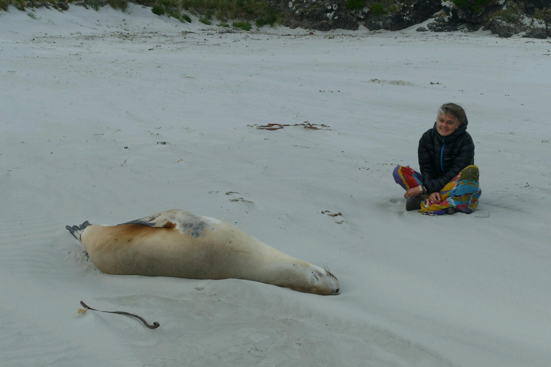 Renseignements et dépliants pris, nous visons Allans Beach pour déjeuner. Sur la route, nous transportons un jeune autostoppeur français pendant quelques kilomètres. Après avoir déjeuner dans notre van, nous prenons la direction de la plage. A peine arrivés, nous tombons sur une très belle femelle otarie. Le long de cette longue plage, nous voyons ensuite quatre lions de mer mâles. Nous restons longtemps (malgré l’odeur pestilentielle) à les observer dormir, se tourner, s’étendre, se recouvrir de sable… Il ne faut pas trop les embêter. Il est possible de les approcher mais il est interdit bien entendu de les toucher.