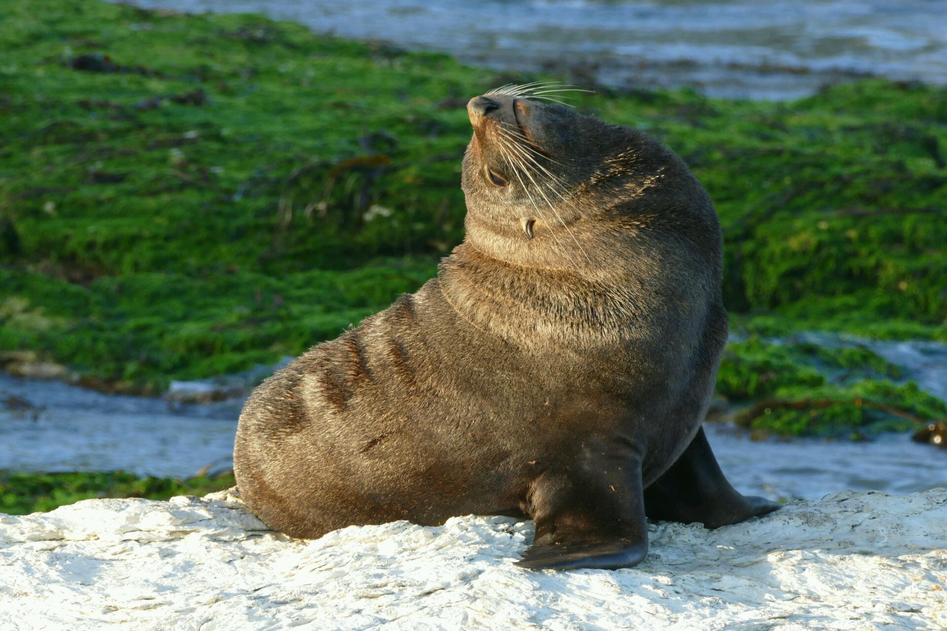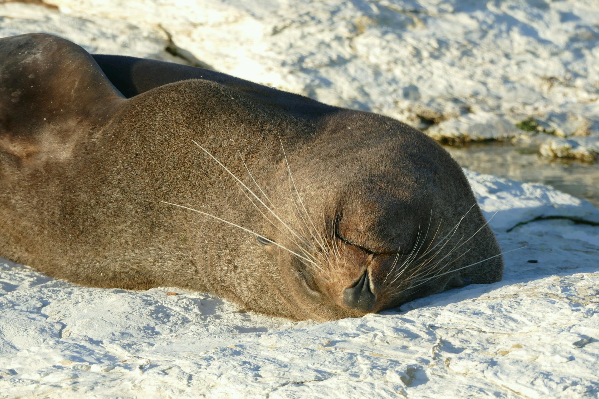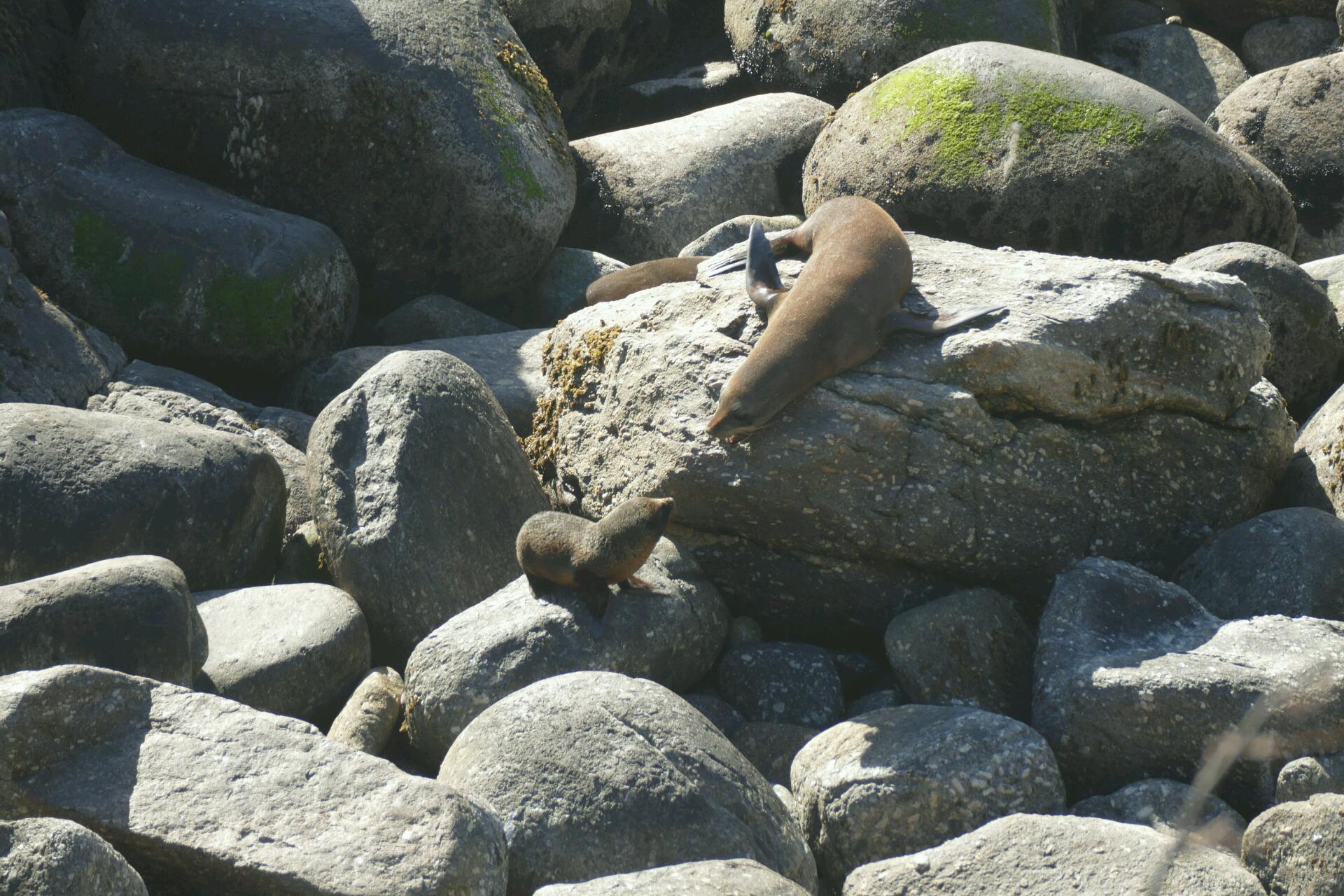 Nous trouvons des phoques ici aussi, sur la côte ouest. Nous nous arrêtons à Cap Foulwind pour une dernière petite balade le long des falaises en direction d'une pointe rocheuse habitée toute l'année par des otaries à fourrure. Nous pouvons admirer la colonie depuis des plateformes d'observation situées sur un sentier que l'on parcourt en dix minutes depuis le parking. Des panneaux d'explication donnent des informations sur les activités de la colonie et son cycle de reproduction, sans oublier des informations historiques sur l'industrie de la chasse aux otaries qui a autrefois existé en Nouvelle-Zélande. A cette période de l'année on a même pu voir des bébés otaries dont certains s’en donnaient à cœur joie entre les rochers et les petites retenues d’eau.