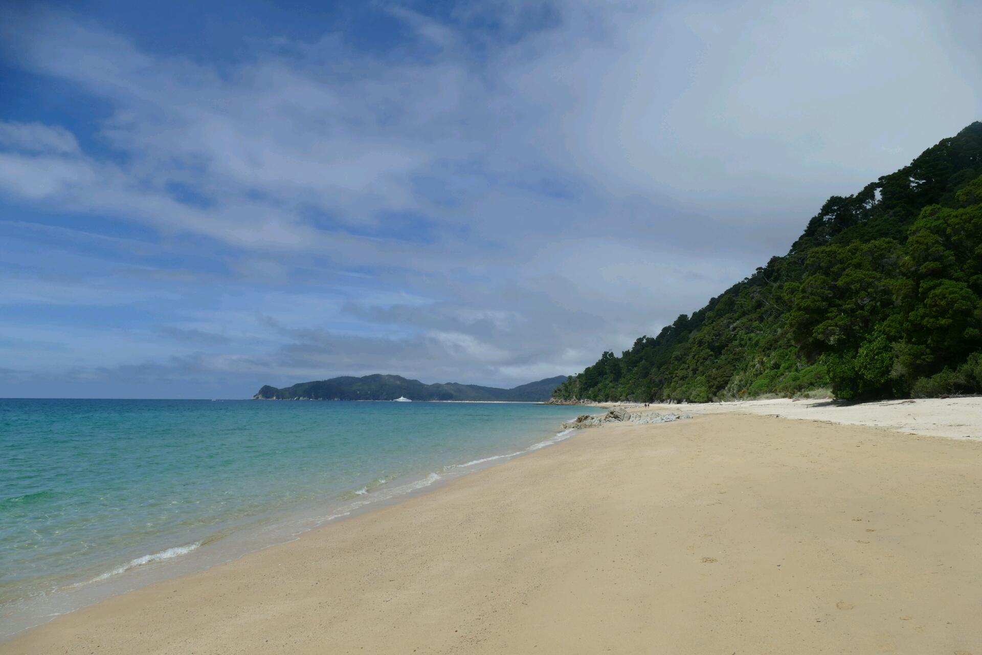 Le soleil est de la partie. Avant de déjeuner, nous allons piquer une tête dans la mer… qui est à la même température qu’en Normandie ! Nous voyons les allées et venues des waters taxis, très réputés dans la région. Ces bateaux, au tarif assez élevé, offrent des services de navettes régulières (été comme hiver) à différents endroits du parc national. Comme la grande randonnée ne fait pas une boucle, les bateaux permettent aux randonneurs de revenir à leur point de départ ou de ne faire qu’une partie du sentier. Cet après-midi, après une sieste pour récupérer de ce matin, nous marchons trois heures vers le nord le long du sentier côtier qui alterne des paysages de jungle tropicale et de bords de mer. La mer y est d’un azur étincelant, les criques isolées et les jolies plages de sable ocre inciteraient à la détente et au farniente s’il n’y avait pas de Sandflies ! Le DOC mène une lutte féroce contre les rats et nous voyons des pièges (toujours vides) très fréquemment le long de ce sentier de randonnée (comme dans tous les autres d’ailleurs). Nous sommes obligés de dîner dans le van encore une fois pour nous tenir à l'abri des piqûres.
