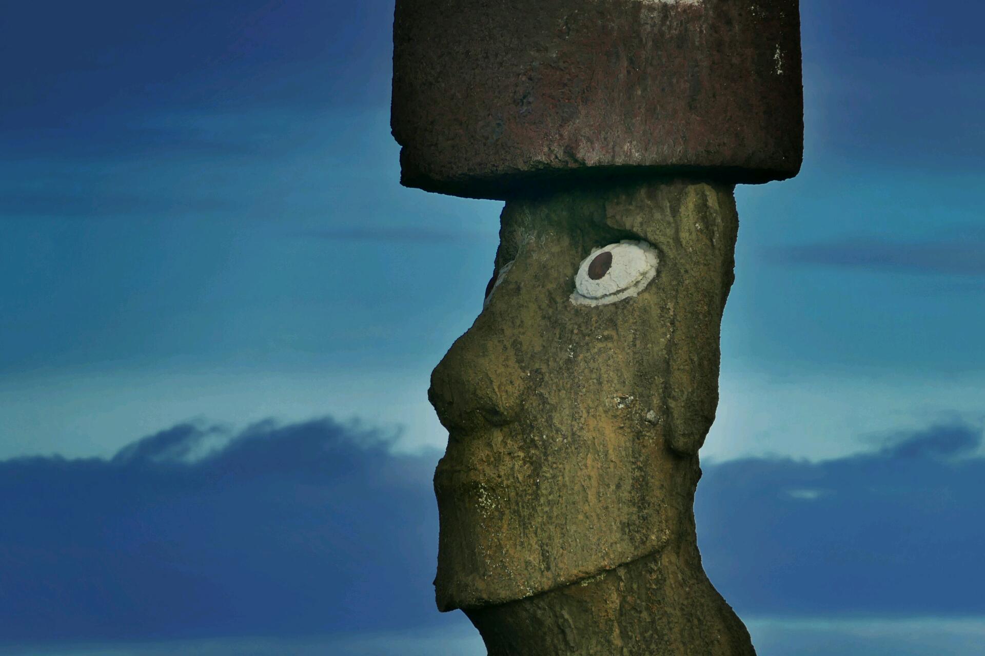 En quelques mots, Rapa-Nui est le résultat de trois volcans maintenant éteints. Rano Kau au sud, Maunga Terevaka au nord et les monts Poike à l'est. Un groupe d'explorateurs polynésiens dirigé par Hotu Matu'a s'installèrent sur l'île. Au fil du temps, des clans dirigés par les descendants de Hotu Matu'a se formèrent. Un d'entre eux devenait l'Ariki (roi) Matu'a et dirigeait toute l'île avec un grand prêtre comme conseiller. Afin de satisfaire leur dieu Make Make, le clan dominant demandait aux autres clans de construire des ahûs (plateformes cérémonielles) sur lesquelles se dressaient des moaï (ces statues géantes faites en basalte) en mémoire de leurs ancêtres. Leur construction s'arrêta subitement (sûrement du fait de guerres entre clans). Et puis la révolte survint contre l'ordre ancien, se traduisant par le renversement des statues protectrices si chères à l'ennemi, face contre terre pour l'humilier, et l'arrachage des yeux de corail blanc, siège de l'énergie spirituelle, pour l'atteindre dans sa sacralité.