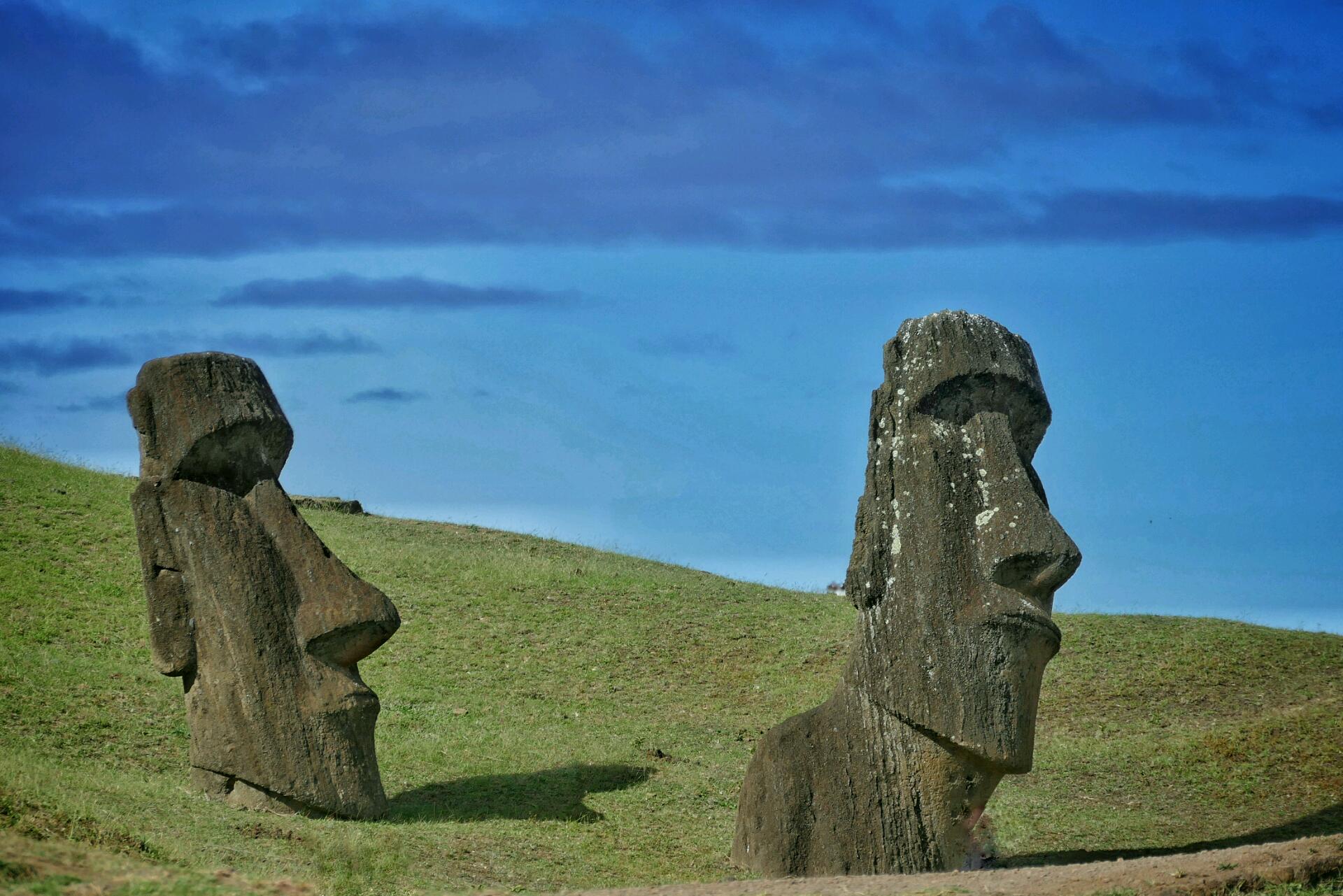 Initialement, notre motivation pour l'île de Pâques n'était pas des plus affirmées. Si Rapa Nui (le nom maori de l'île) s'est retrouvée dans la liste des points de chute de notre tour du monde, c'est surtout parce qu'elle se trouvait sur notre route, et qu'en conséquence il aurait été dommage de la contourner exprès. Mais au contraire de ceux qui rêvent de moaï (ces grandes statues typiques de l'endroit) depuis l'enfance, bercés par les histoires mythiques des géants de pierre et les reportages qui entretiennent la légende, nous n'avions pas d'intérêt particulier préalable pour aller leur rendre visite. Sans trop m'être renseigné par avance, j'imaginais en arrivant sur l'île une destination déjà trop touristique, et un climat intermédiaire, ni proprement tropical ni véritablement tempéré, n'aidant pas à classer par avance ce bout de terre isolé dans une case bien précise.