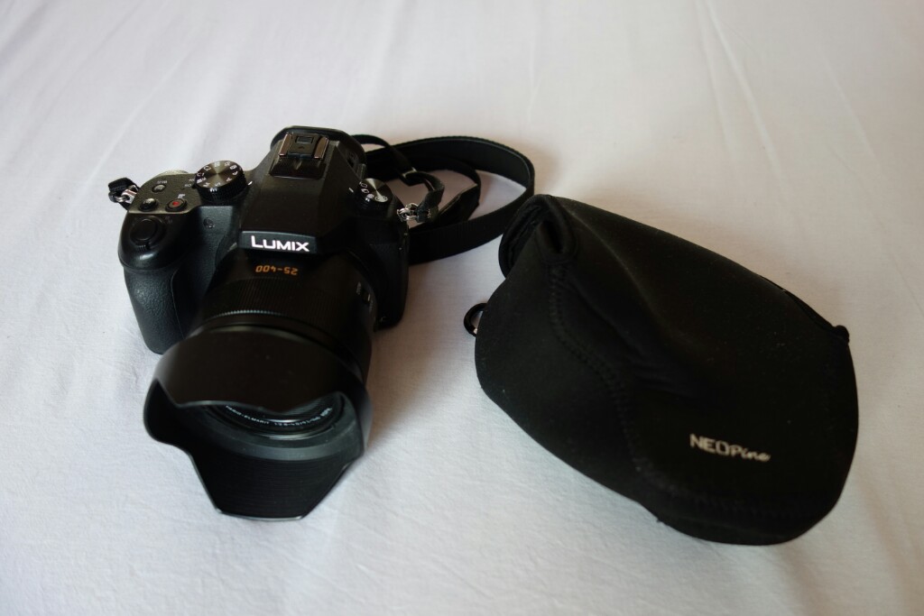 Notre appareil photo de base, le FZ1000, ici (mal) photographié avec sa housse par le RX100