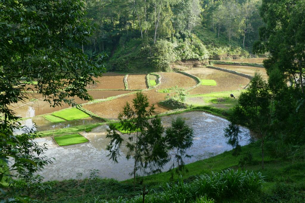 Nous nous arrêtons pour déjeuner dans un restaurant qui nous propose une belle carte mais qui, finalement, ne peux servir que du Nasi Goreng, le plat de base indonésien constitué de riz et de légumes, et une omelette. Un couple de français passant par là nous indique un autre restaurant un peu plus loin. Nous reprenons notre scooter pour y faire une halte et compléter notre repas. Le riz, le café et le cacao sèchent devant les maisons, d’énormes papillons nous narguent toute la journée. Nous faisons quelques photos dans les rizières avec les belles couleurs de fin de journée. Nous terminons notre journée au Rimiko, un restaurant petit mais très animé du quartier de notre guesthouse, où nous avons passé un très bon moment, notre dîner étant accompagné de guides à la guitare, entonnant des chants indonésiens, anglais et même français.