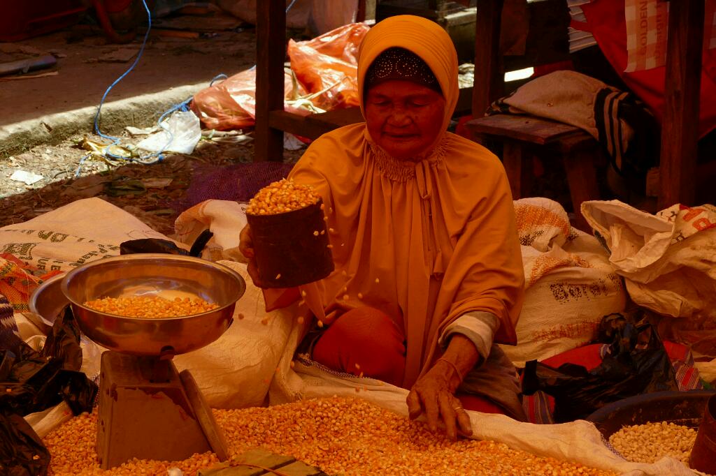La dame de l’hôtel va se charger d’essayer de nous trouver des gens pour partager le prix d’une voiture d’ici à Ampana pendant que nous retournons à la chute d’eau, en nous arrêtant cette fois à un petit marché qui vend notamment de la chauve-souris grillée.