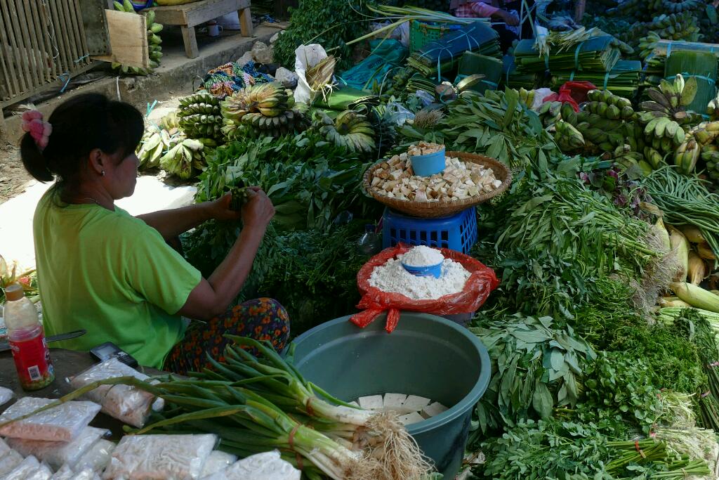 En rentrant, nous nous arrêtons d’abord au Rimiko commander un Pa’piong qui a besoin de deux heures de préparation (de la viande accompagnée de légumes et d’herbes locales cuisant très longtemps dans un bambou). Puis nous traversons un minimarché où des poussins multicolores sont en vente ! Nous retrouvons la même troupe que la veille qui nous permet de passer une soirée en musique.