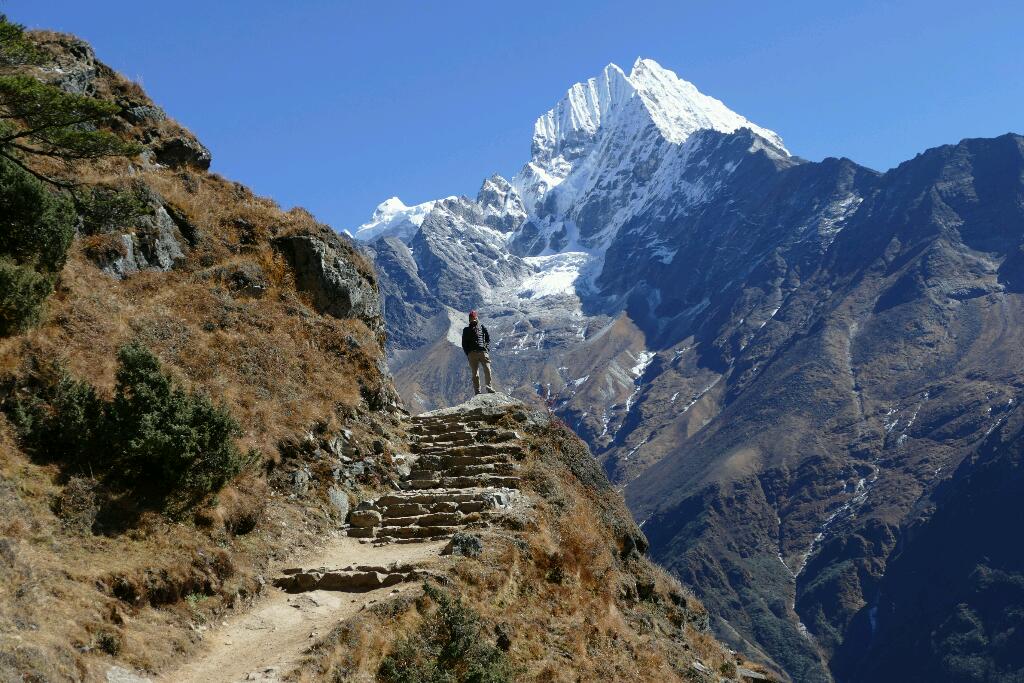Sortir de Namche est difficile : il faut monter de nombreuses marches. J’ai le souffle court et je ne parle pas. Je m'arrête de plus en plus souvent pour reprendre mon souffle. La respiration reste néanmoins haletante. À la vitesse de la tortue, je me traîne les pieds dans cette pente qui n’en finit pas. Et pourtant, j’en suis seulement à mon troisième jour de trek, à une altitude ne dépassant 3 500 mètres. Ouach ! Il s’agit aujourd’hui de monter jusqu’à presque 4000m et de redescendre un peu au village de Phortse Thanga pour dormir, toujours dans un souci d’acclimater le corps progressivement.