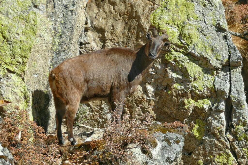 Le soleil poursuit sa course bien au-dessus des crêtes. Impossible de lui échapper, le flanc de la montagne est dénudé. En un rien de temps, j’enlève legging et chaussettes et je me retrouve en jupe... pour l'instant ! Je réussis à voir un bouquetin brouter dans les buissons rabougris à flanc de montagne.