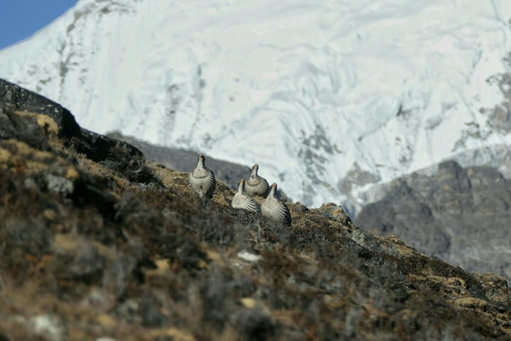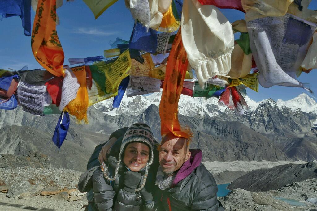 Assez injustement, ni l’ascension (facile) du Gokyo Ri ni le passage (plus difficile) du Renjo La, d’une altitude voisine comprise entre 5400 et 5500 mètres, ne constitueront le sommet de notre tour du monde, dont la palme reviendra contre toute raison au Khardung La (5650 mètres) qui aura exigé de nous le seul mérite de commettre l’erreur de nous rendre sans effort (par la route) dans la vallée de la Nubra lors de notre escale à Leh. Nous avons toutefois eu sans doute plus qu’au Ladakh le sentiment de nous trouver en haute montagne, peut-être à cause de la plus grande proximité avec les neiges et les glaces, peut-être à cause de la disparition progressive puis définitive, à partir de Machhermo, de toute zone habitée en permanence (les lodges disséminés le long des pistes de trek ainsi que le regroupement de Gokyo n’ayant manifestement d’autre raison d’être que de servir d’infrastructure pour les randonneurs).