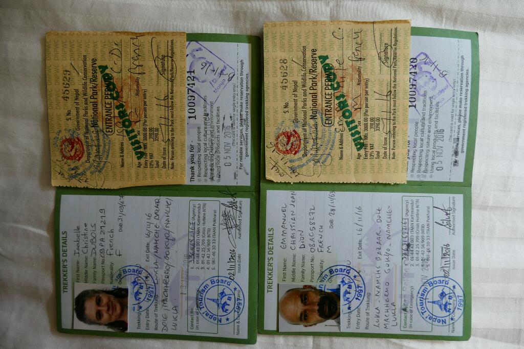 Nous cherchons l’office du tourisme susceptible de nous fournir les permis de trek (TIMS) mais on nous oriente vers celui qui ne gère que les groupes. L’office pour les particuliers est beaucoup plus loin (encore plus loin que notre virée de la veille) alors nous prenons un taxi pour nous y conduire. Il y a une longue file d’attente mais nous arrivons à nos fins avant midi. Permis en mains, on nous dit que nous pourrons acheter les billets d’entrée dans le parc national sur place.