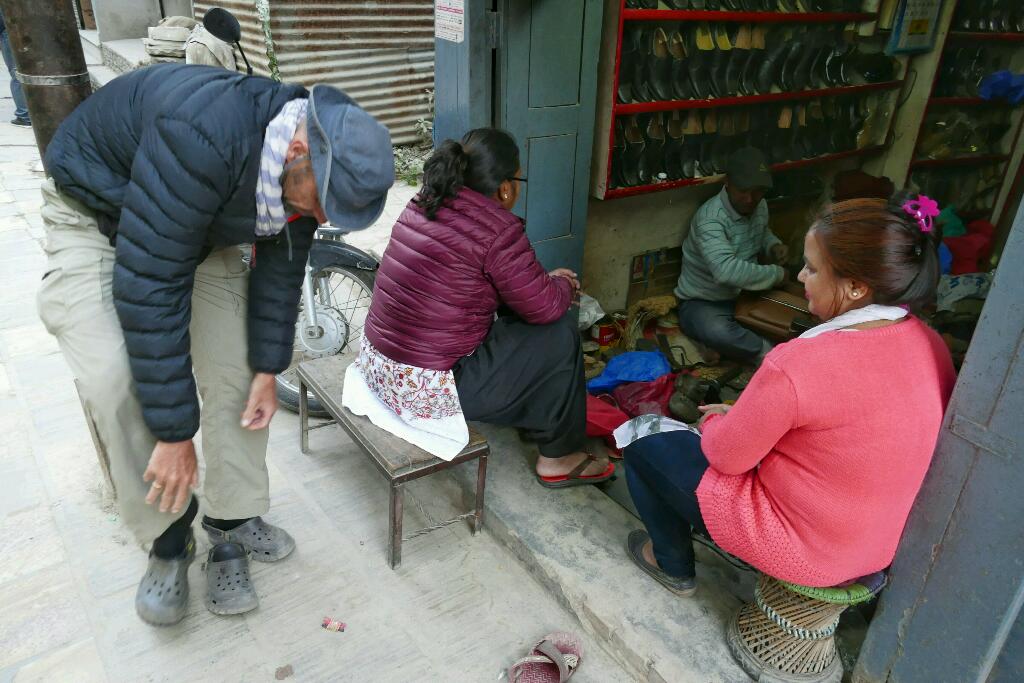 Nous commençons la journée par acheter une carte de téléphone. Manu pourra au moins se connecter sur Google Maps, ce qui le rassure énormément. Quelques mètres plus loin, je rentre dans une toute petite boutique tenue par une jeune népalaise adorable à qui j'achète un saroual.