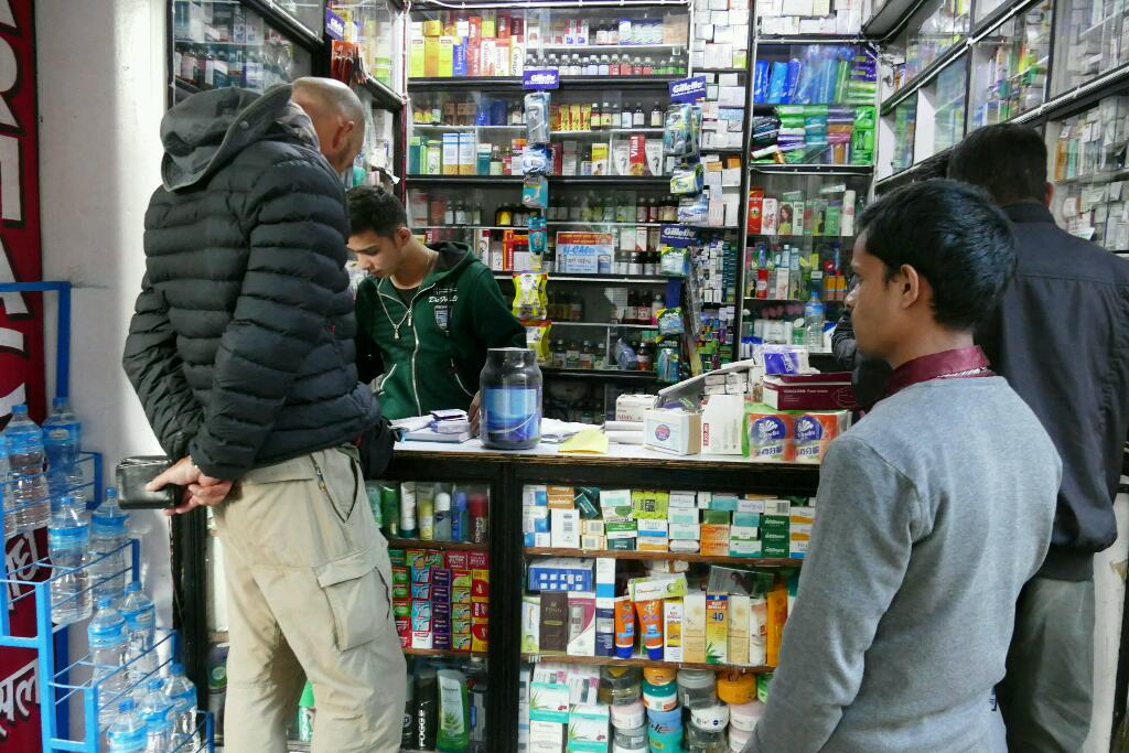 Manu voudrait trouver de la Chlorhexidine pour désinfecter ses plaies mais il faut pour cela trouver l’unique pharmacie, ce qui s’avère difficile, d’autant plus qu’un habitant sur deux nous dit qu’il n’y en a pas. C’est maintenant moi qui traîne le pas. Je grelotte, j’ai mal partout, je rêve de me coucher.