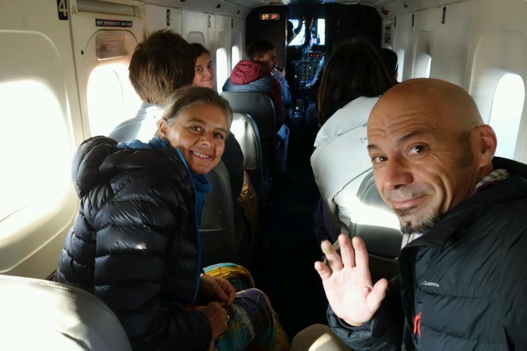 Nous travaillons beaucoup pendant le vol de 4 heures. Manu se charge comme toujours des photos et moi je prépare plusieurs articles pour Facebook que j’aurai juste à poster dès que nous aurons de la connexion.