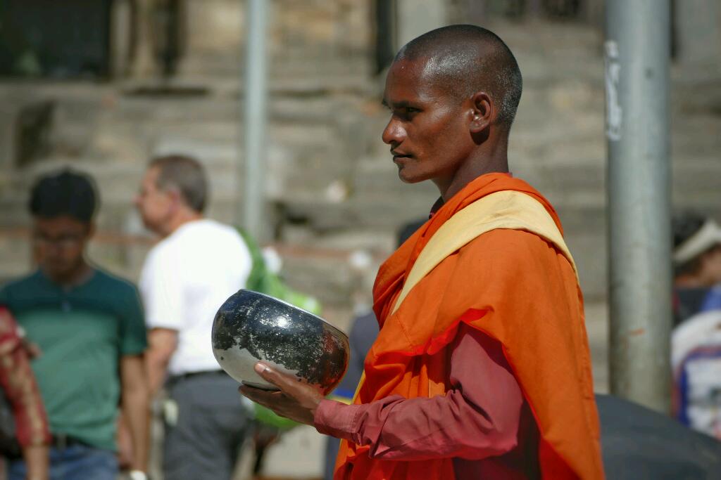 On peut observer le fourmillement des gens sur la place : vendeurs de rue harcelant les clients, conducteurs de rickshaws et de taxis hélant les touristes, porteurs de marchandises de toutes sortes ployant sous leur charge, enfants jouant au ballon, touristes photographiant, pour quelques roupies, des moines pomponnés pour l’occasion.
